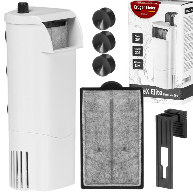 Prenez soin de la santé de vos tortues et autres animaux aquatiques sans stress ni nettoyage fastidieux ! Kruger Meier TurtleX Elite est un filtre aquatique moderne conçu pour les animaux qui ont besoin d'un faible niveau d'eau — il suffit de 5 cm, et le filtre commence à fonctionner et à maintenir la propreté.